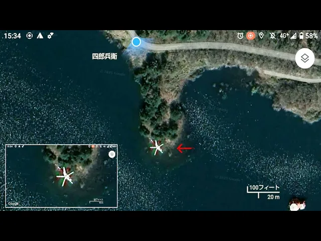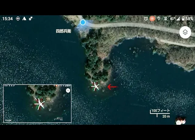 地図で見つけた溜池の岬の先端にある謎の物体。これはいったいなんなのだろう?場所:深田調整池
