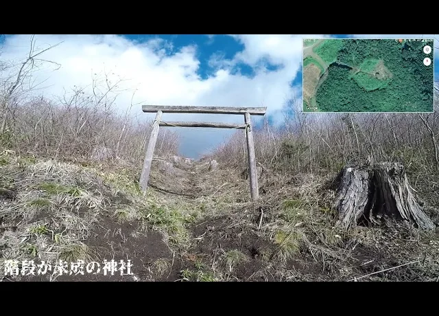 地図で見つけた小屋が気になったので行ってみます。神社だったようだけど階段が未成になってますね。
