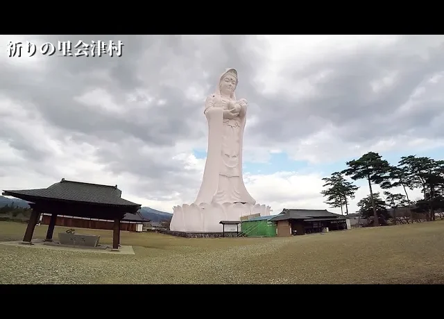 「祈りの里 会津村」内にある高さ57メートルの巨大な観音像『会津慈母大観音像』特攻隊の元隊員だった創立者が平和な世の中にしたいと願って約40年前に建てたそうです。敷地内は広大で、6万坪もあるそうです。場所: 福島県会津若松市河東町