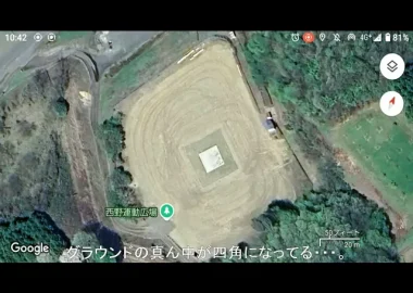 地図で見つけたグラウンドの真ん中が四角になってる場所に行ってみます。…