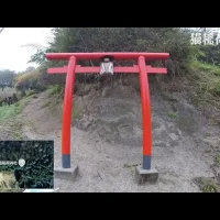 地図で気になった猫稲荷神社に行ってみます。この神社の鳥居に木彫りの猫があります…