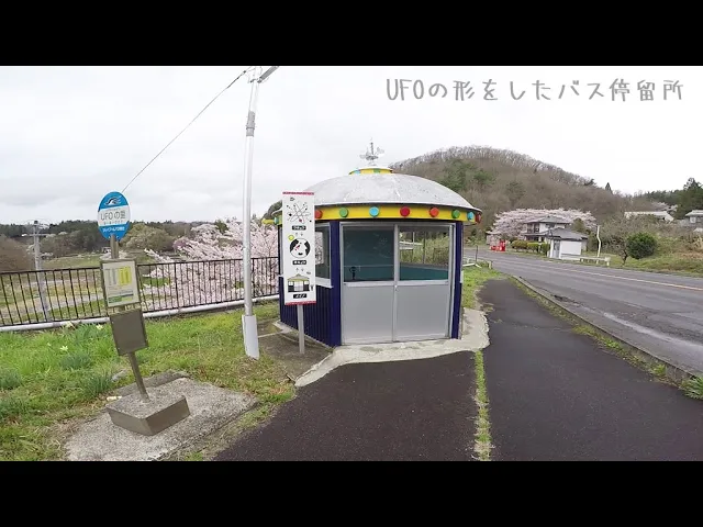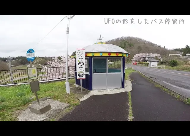 UFOの形をしたバス停留所がありました。バス停の名前はUFOの里になってます。場所: 福島県福島市飯野町