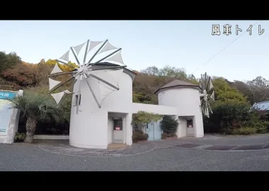 瀬戸内市牛窓の道路沿いにある風車トイレ。どうやらギリシャ・ミコノス島にある…