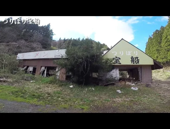 釣り堀に木造平屋建てのラーメン店が併設された施設の廃墟です。かろうじて釣り堀というのはわかるけど、…