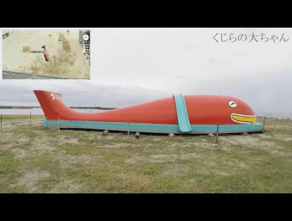 昭和58年に設置された海中滑り台で、ここ平磯海水浴場のシンボル的存在らしいです。海に浮かぶ姿を見て…