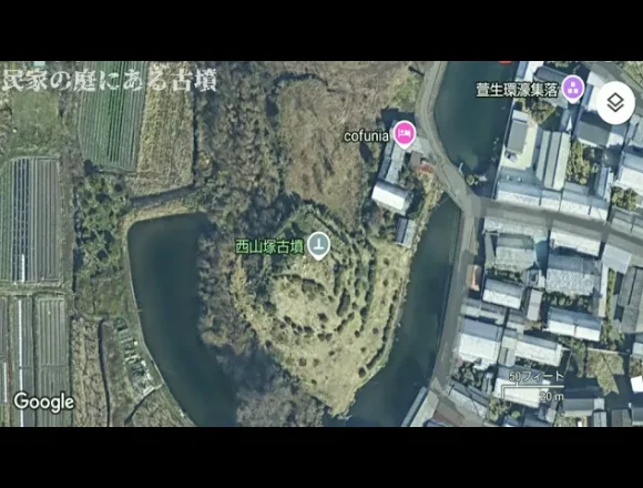 民家の庭にある前方後円墳に登ってみます。6世紀前半に築造されたと見られる全長114メートルの前方後…