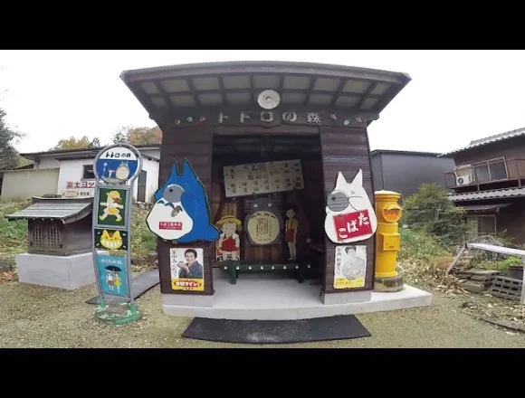 住宅地の奥にひっそりとレトロ看板とトトロのバス停があります。なぜレトロ看板とトトロなのかは不明です…