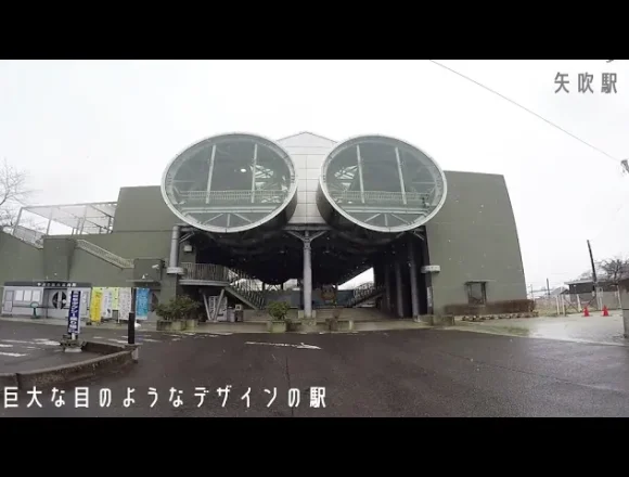 巨大な目のようなデザインの駅舎『矢吹駅』が珍しい!
