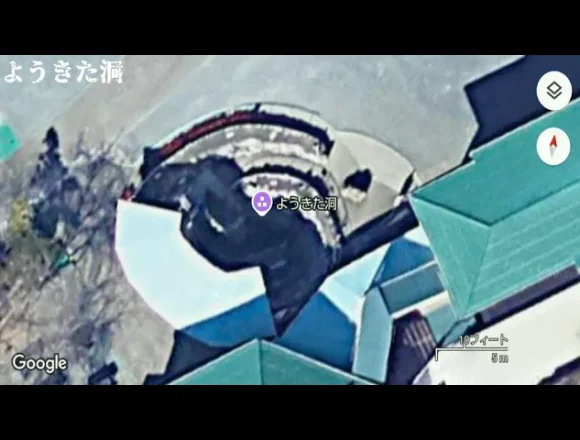 地図で見つけた「ようきた洞」に入ってみます。なんと洞窟にイルミネーションがあります!天然冷風浴とも…