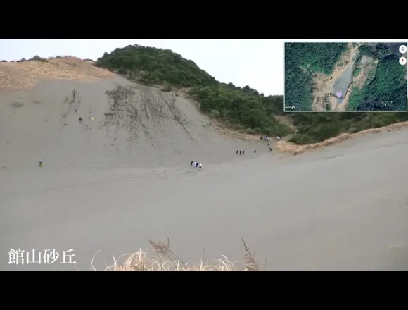 房総半島にある大きな砂山「館山砂丘」浜はから吹き上げられた砂が山の斜面に堆積してできた天然のサンド…