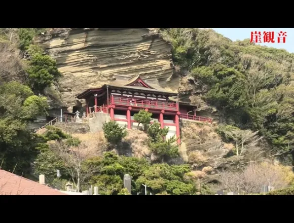 船形山の絶壁に舞台造りの観音堂が建てられてます。海上安全と豊漁を祈願して建立されたそうです。館山湾…